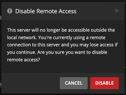 Click the Settings icon (top right) → "Server" (top) → "Remote Access" (left).